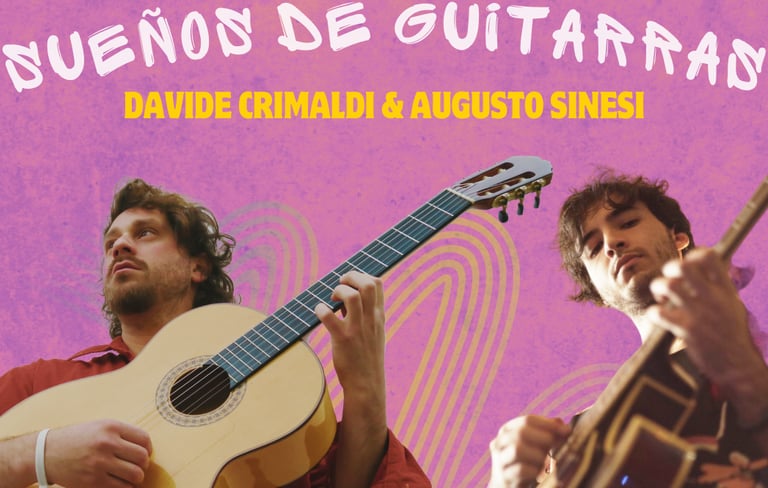 “Sueños de guitarras” è un progetto che nasce a Berlino dall’incontro di due chitarristi. Davide Crimaldi e Augusto Sinesi propongono un viaggio culturale di suoni attraverso il mondo delle sei corde spaziando dalle sonorità latinoamericane (Brasile e Argentina) alla tradizione Jazz, Fusion e portando alla luce anche composizioni originali.